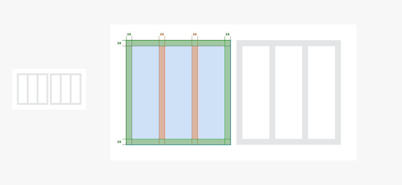 Container Spacing omhandler avstanden mellom elementer som befinner seg innenfor body. Her fastsettes en margin på 24px mellom hver komponent eller element. Denne typen avstand gir en klar og organisert struktur uten å bruke padding rundt hvert enkelt element.